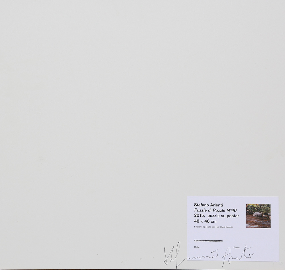Stefano Arienti 1961 Puzzle di puzzle n.40 - 2015 tecnica Puzzle su poster su PVC Dimensioni cm. 46,5 x 48,5 Firma Firmato sul retro Note Esemplare unico Provenienza Collezione Privata Esposizioni “The Blank Benefit”, Spazio ALT, Alzano Lombardo, 11 dicembre 2015