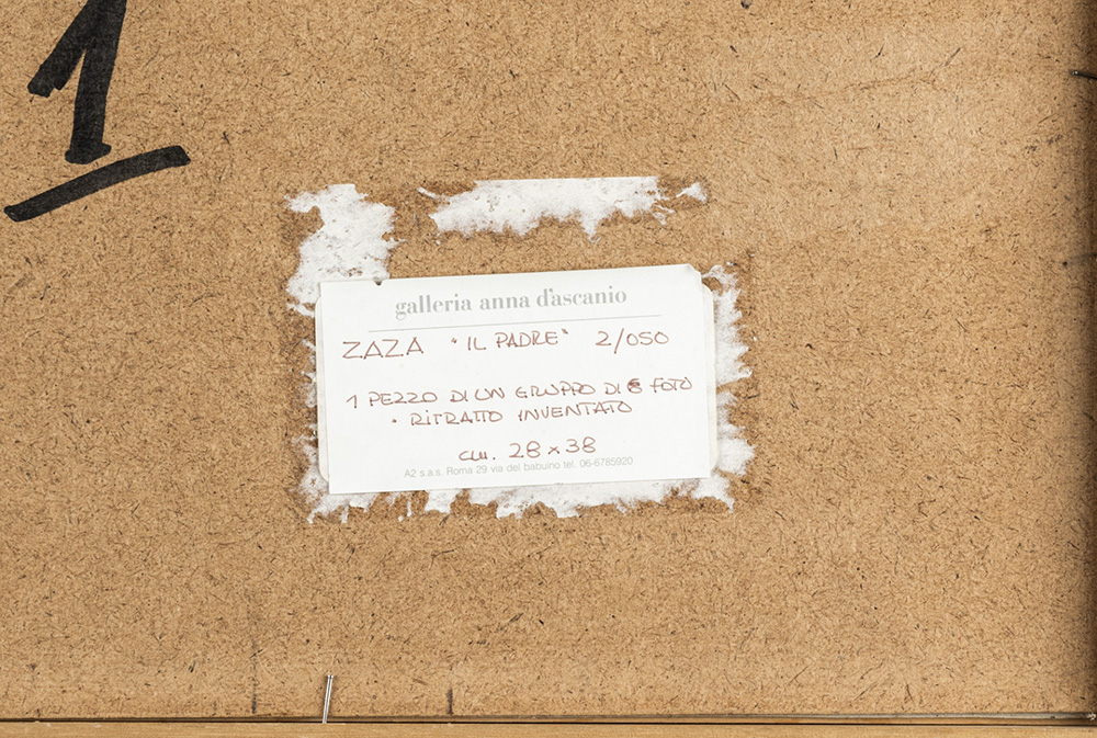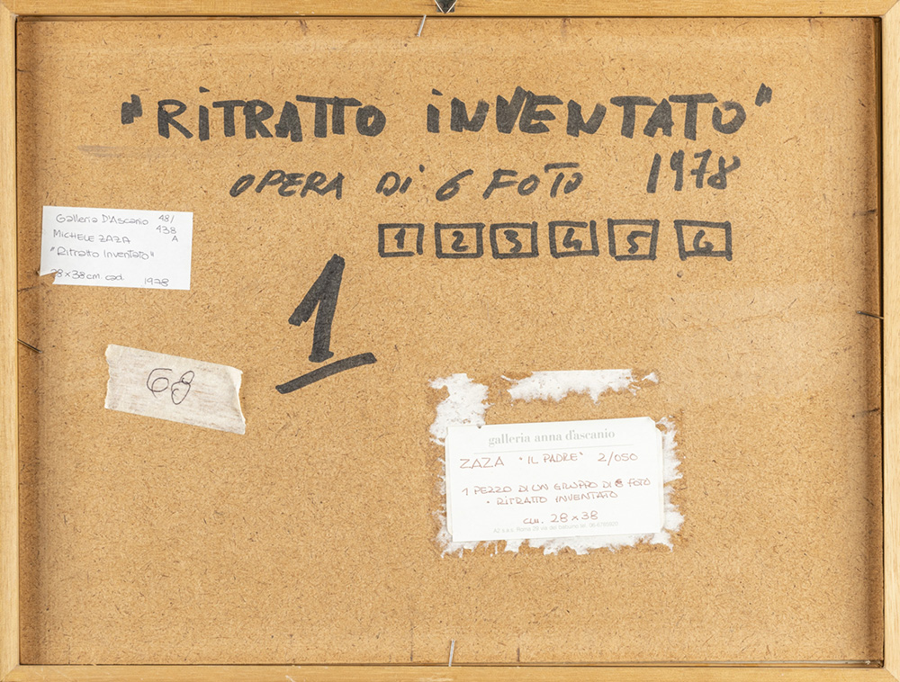 Michele Zaza 1948 Ritratto inventato - 1978 tecnica 6 fotografie a colori Dimensioni cm. 29 x 39,5 cad. Firma Firmato e datato sul retro Documenti Autentica dell'artista su fotografia Note Etichetta Anna D’Ascanio, Roma sul retro Esemplare unico Provenienza Collezione Privata
