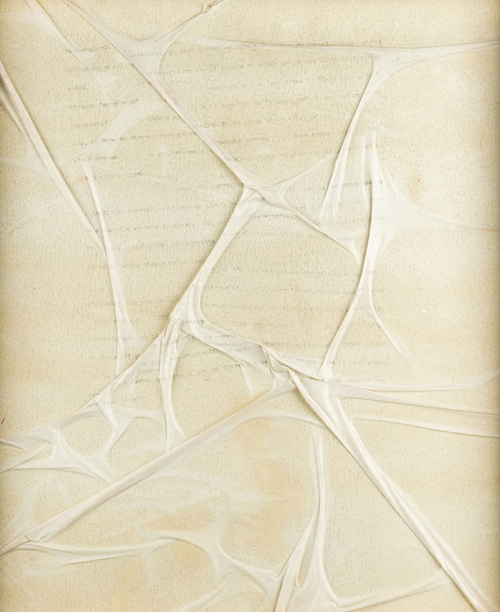 Ugo Carrega 1935 - 2014 Senza titolo - 1976 tecnica Carta dattiloscritta accartocciata e incollata su cartone Dimensioni cm. 45 x 38 Firma Firmato e datato sul retro Provenienza Collezione Privata Esposizioni “Scritture”, Mercato del Sale, Milano, 1976