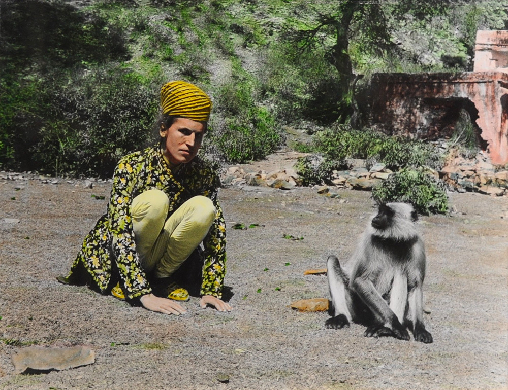 LUIGI ONTANI Monkey (Jaipur 1977) Fotografia a colori Anno 1977 Dim. 30x40 Pubblicata in "Luigi Ontani. TassoDelfiniRatto", catalogo della mostra alla Galleria Emilio Mazzoli di Modena, 2013-2014 Al verso titolo, data e firma