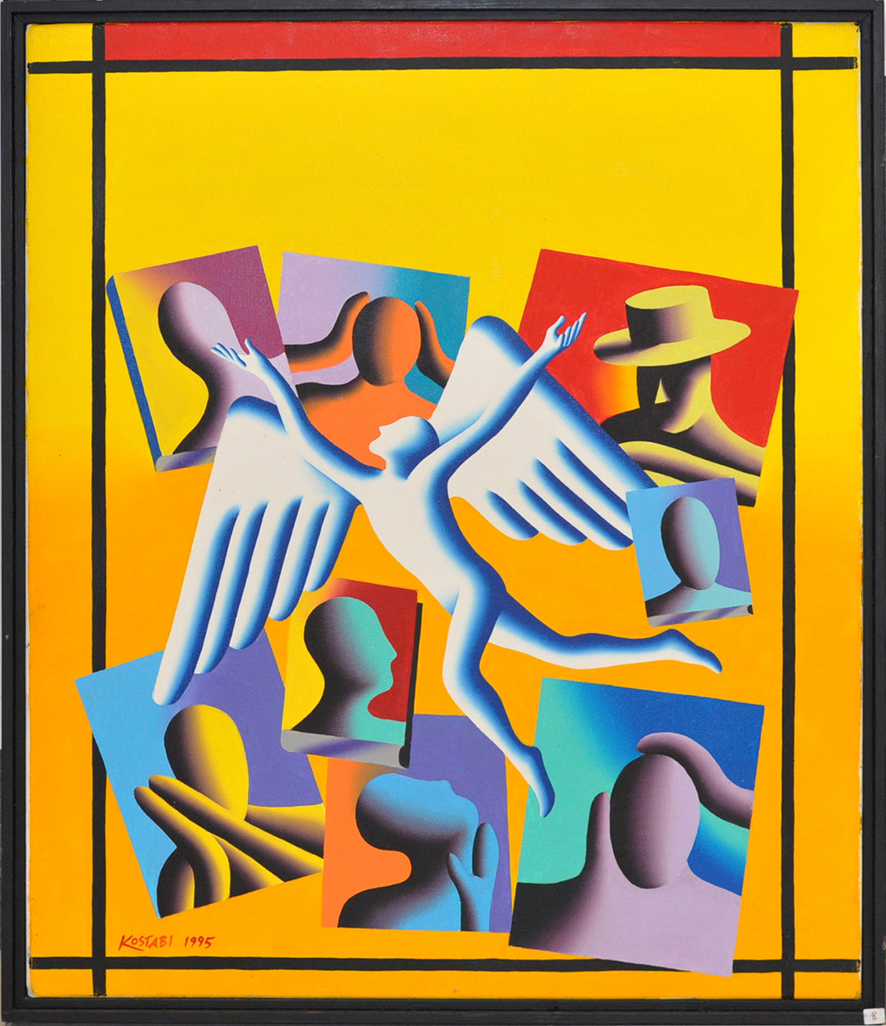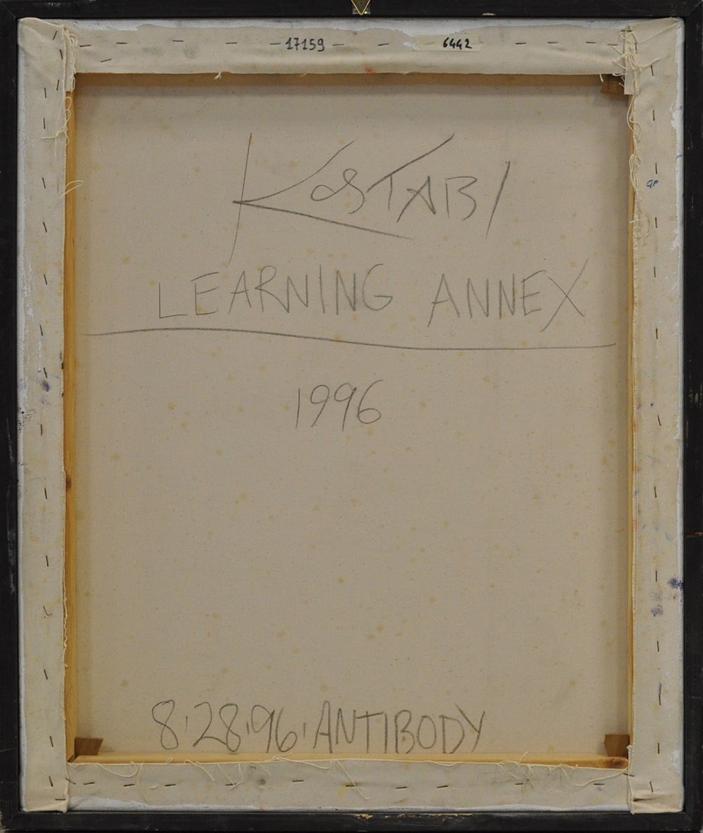 MARK KOSTABI Leaming annex Olio su tela Anno 1995 Dim. 92x77 Al verso data,...