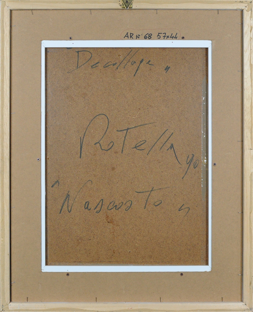 MIMMO ROTELLA Nascosto Decollage su carta Anno 1990 Dim. 56x44 Opera archiviata al N. 1463DC990/000 presso Fondazione Mimmo Rotella Firmato in basso a dx