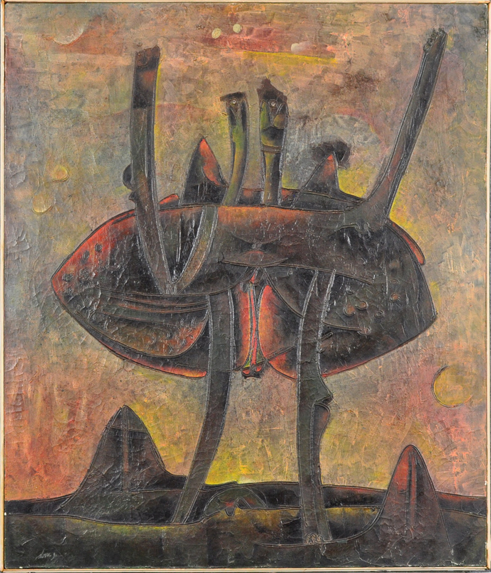 GIANNI DOVA Senza titolo Olio su tela Anno 1958 Dim. 70X60 Al verso etichetta Galleria Pater Firmato in basso a sx