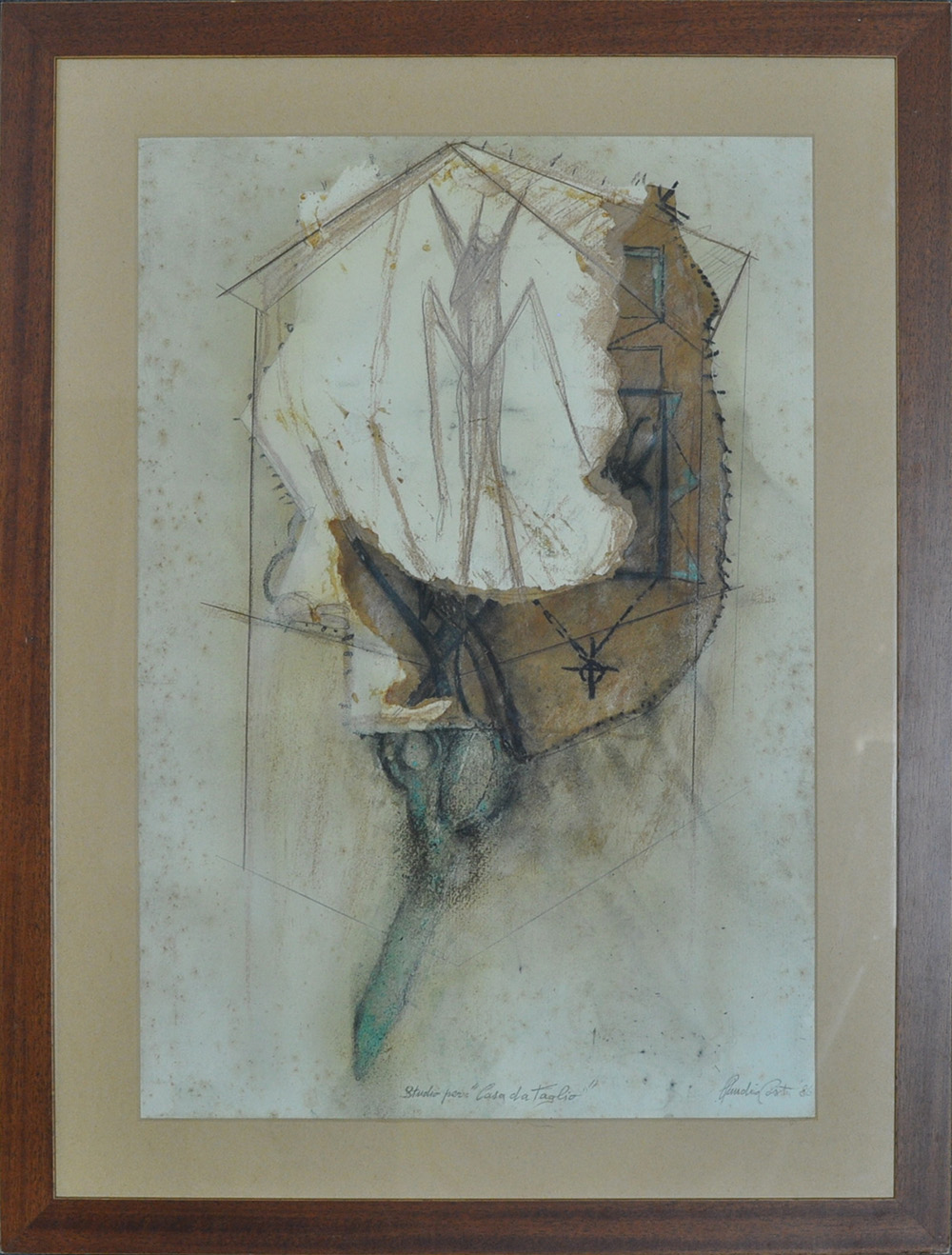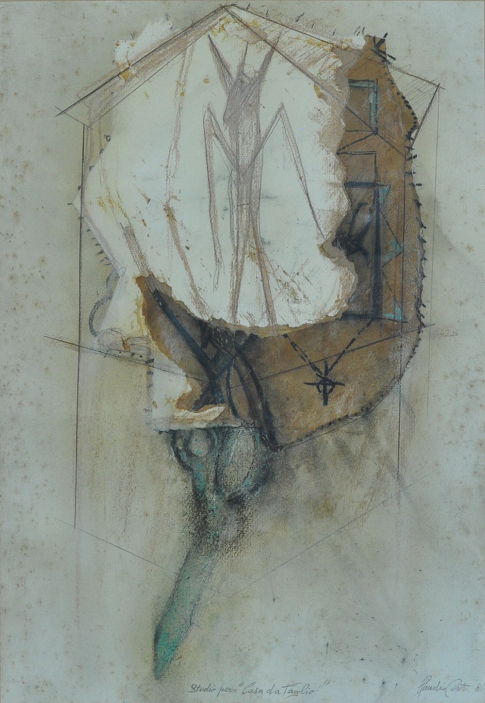 CLAUDIO COSTA Studio per Casa da taglio Tecnica mista su cartoncino Anno 1986 Dim. 70x50 Titolo in basso al centro Datato e firmato in basso a dx