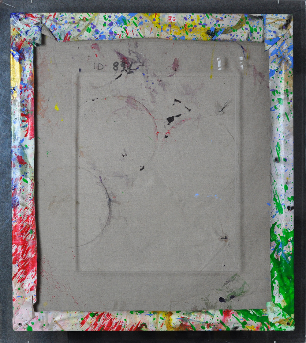 SHOZO SHIMAMOTO Senza titolo Opera in teca di plexiglass Tecnica mista su tela Dim. 90x80 Opera archiviata Firmato in basso a dx