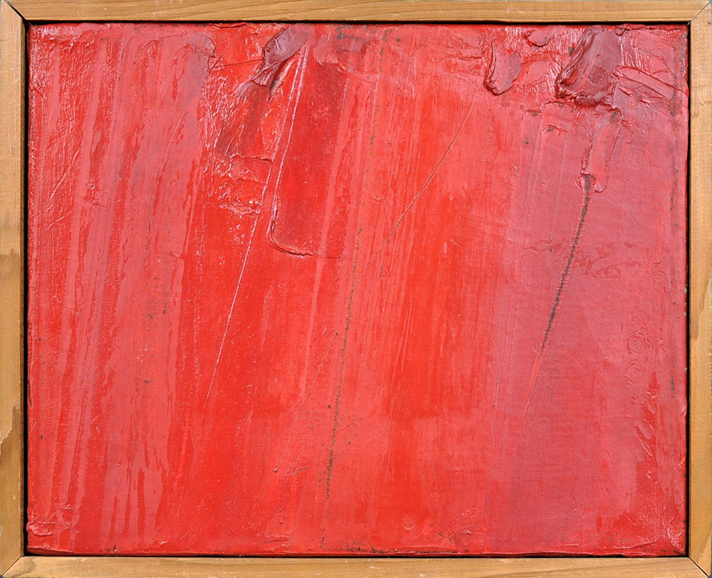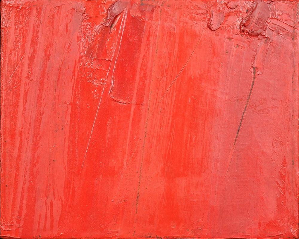 PIERO RUGGERI Rosso vermiglio Olio su tela Anno 1990 Dim. 20x25 Al verso titolo, data e firma