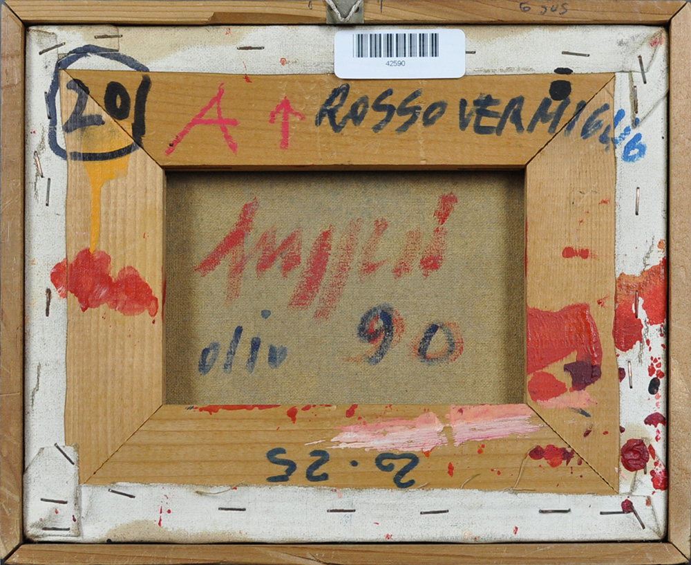 PIERO RUGGERI Rosso vermiglio Olio su tela Anno 1990 Dim. 20x25 Al verso...
