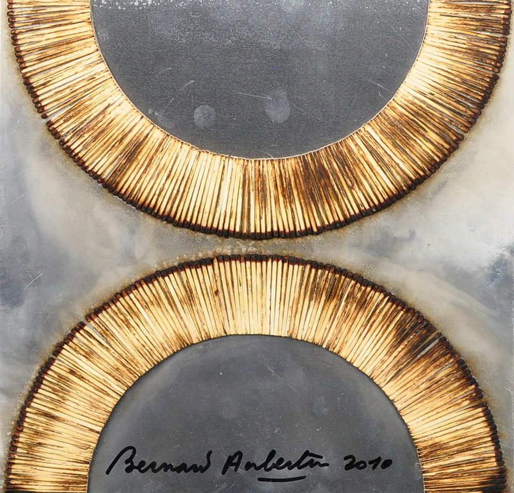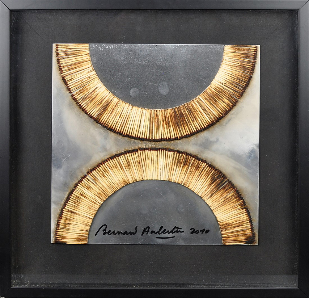 BERNARD AUBERTIN Dessin de Feu sur aluminium Fiammiferi bruciati su lastra di alluminio Anno 2010 Dim. 30x30 Autentica su foto dell'artista Opera archiviata presso Archivio Generale opere di Bernard Aubertin al N° DFA - 12100000012015 - RSN in data 01/04/2015 Provenienza: Studio dell'artista Datato e firmato in basso al centro