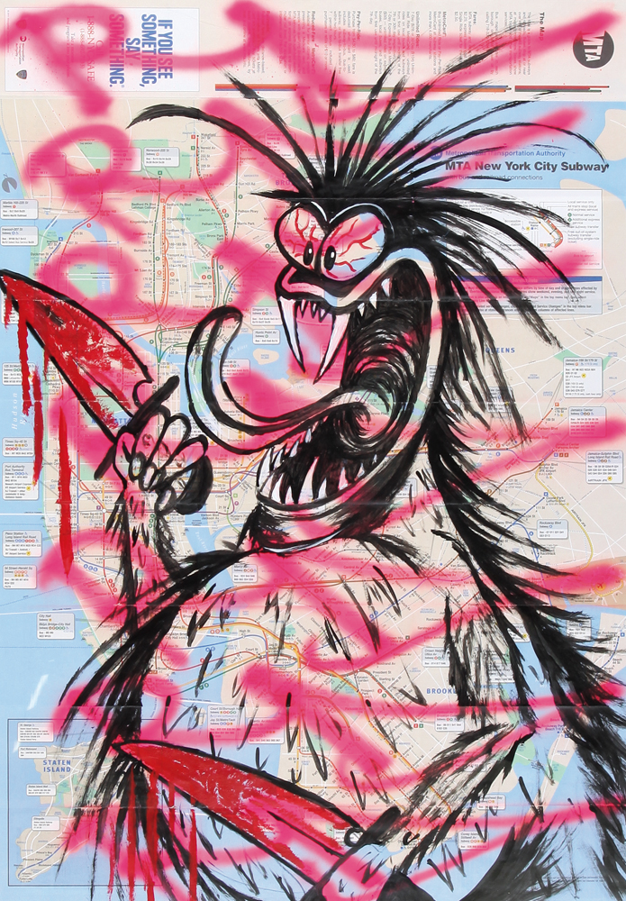 RD357 New York 1968 Crazy Murdering Monster spray and paint on NYC subway map...