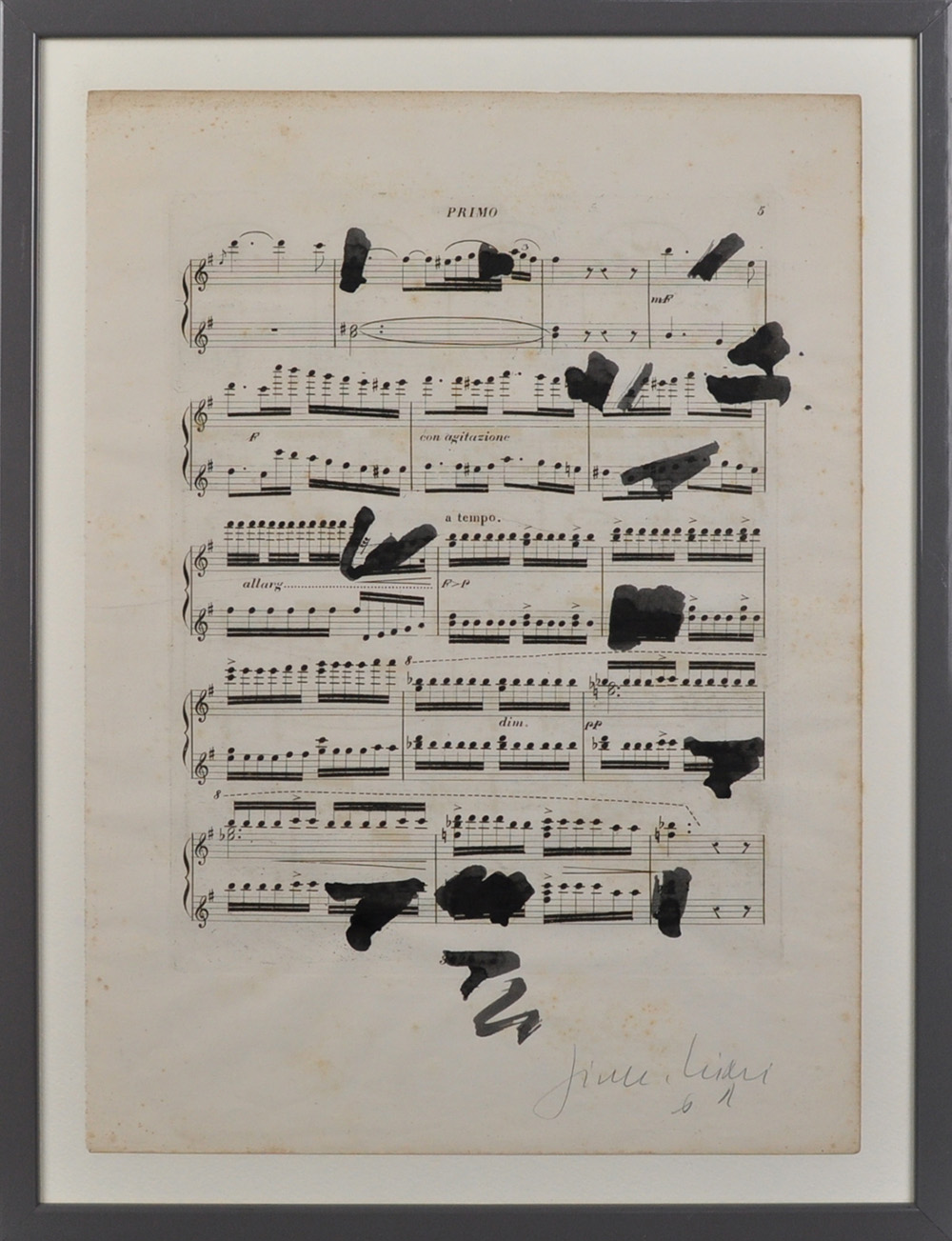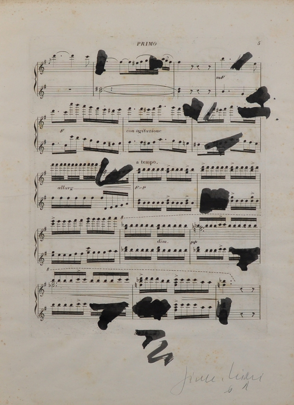 GIUSEPPE CHIARI Senza titolo Tecnica mista su spartito musicale Anni 60 Dim. 35x26 Opera pubblicata su “Giuseppe Chiari – Musica madre” Firmato in basso