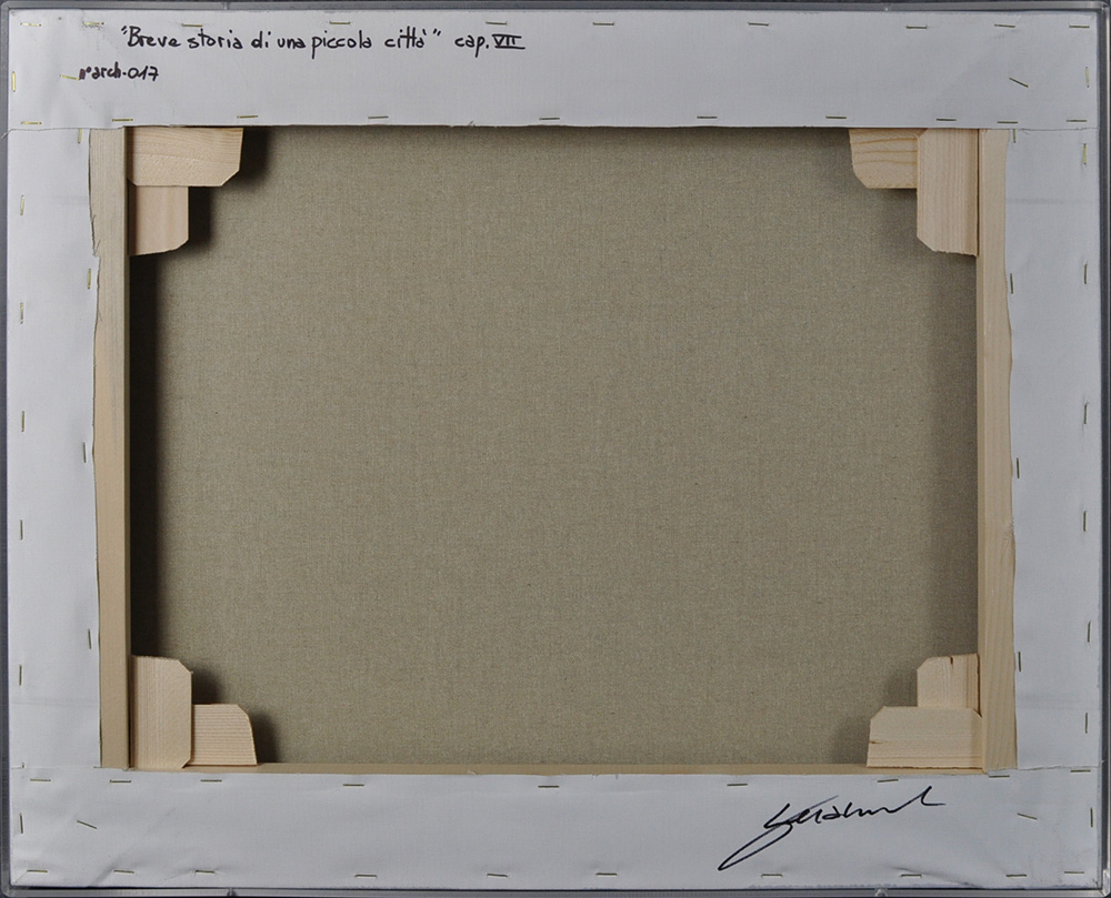 RICCARDO GUSMAROLI Storia di una piccola città Barche di carta su tela Anno...