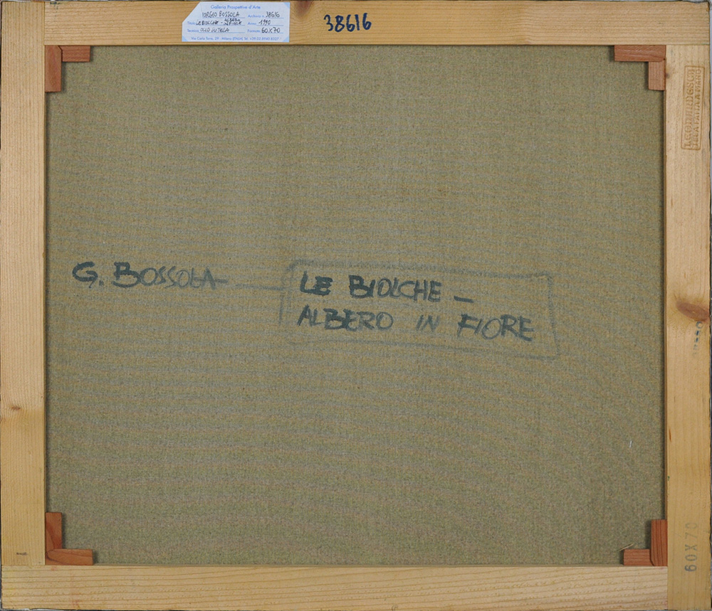 GIORGIO BOSSOLA Le biolche - albero in fiore Olio su tela Anno 1990 Dim. 60x70 Autentica su foto dell'artista Al verso titolo e firma Firmato in basso a dx