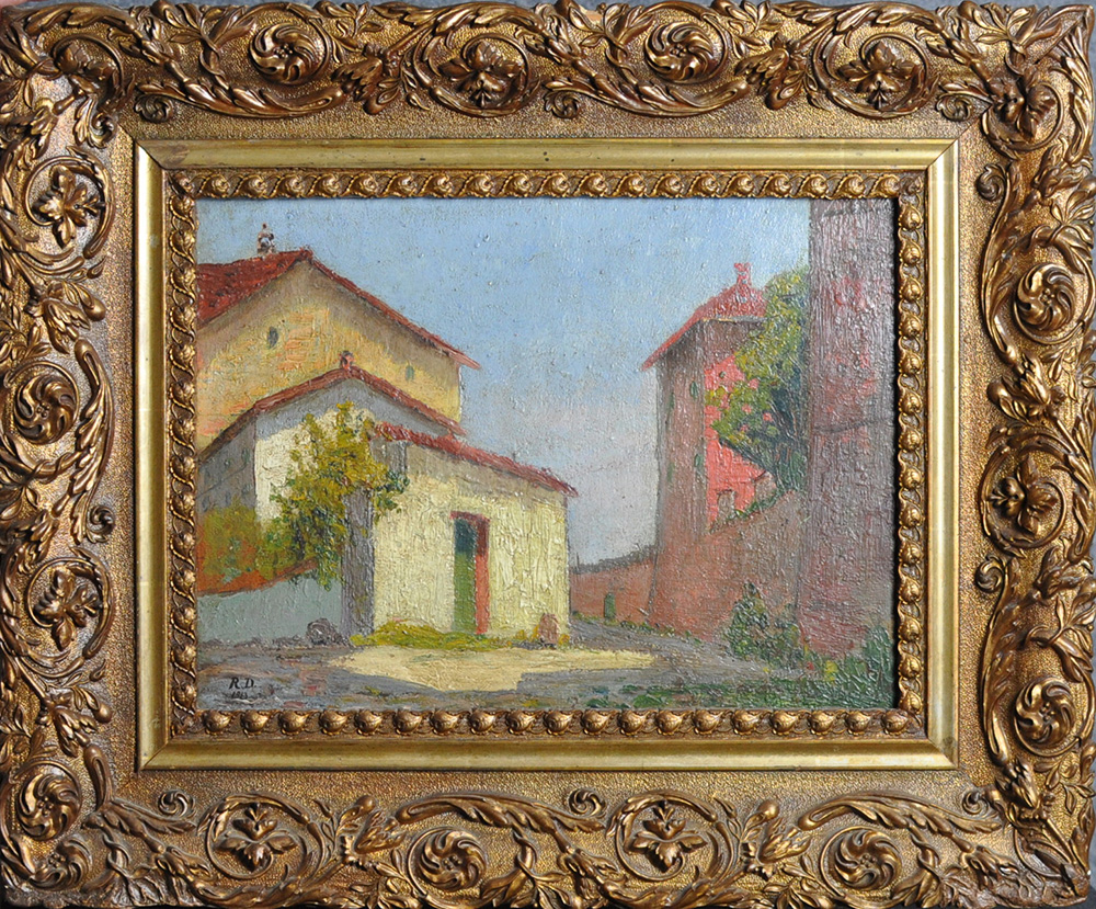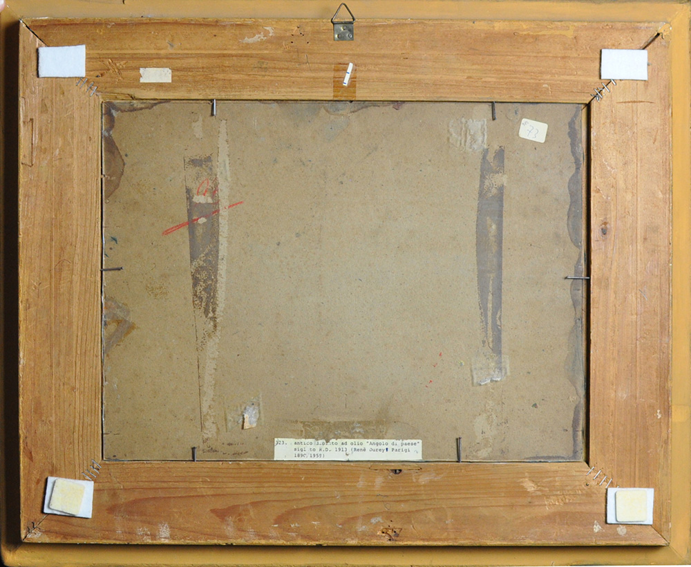 RENE' DUREY Angolo di paese Antico dipinto ad olio su tela Anno 1913 Dim. 28x38 Datato e firmato in basso a sx