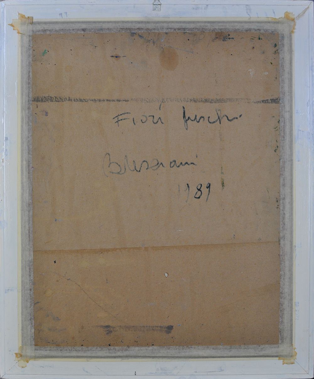 BRESCIANI Fiori freschi Olio su tavola Anno 1989 Dim. 80x60 Al verso titolo, data e firma Datato e firmato in basso a dx