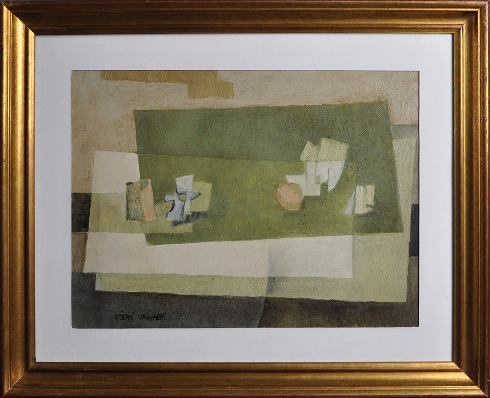 VIERI VAGNETTI Composizione Bianca e verde N.Y. 1970 Olio su cartone telato Anno 1970 Dim. 29x37 Al verso data, tiolo e firma Firmato in basso a sx