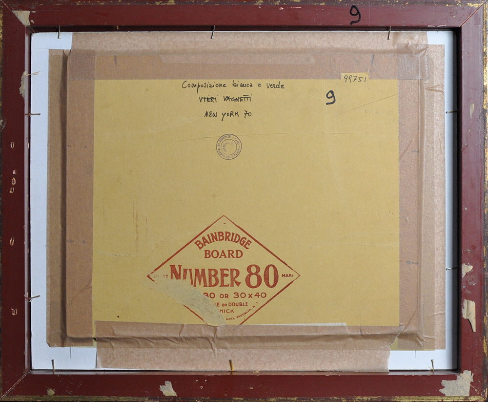 VIERI VAGNETTI Composizione Bianca e verde N.Y. 1970 Olio su cartone telato...