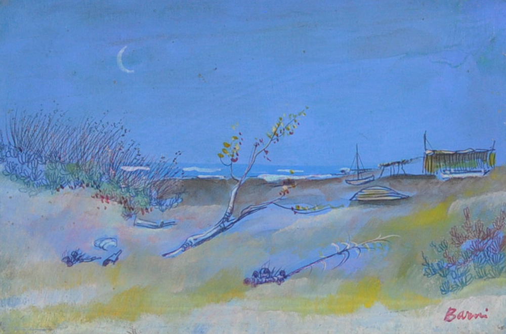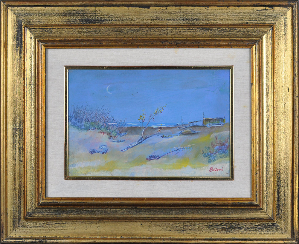 Lot 318 | BARONI Una spiaggia di sera Olio su tavola Anni 80 Dim. 20x30 Al verso titolo...