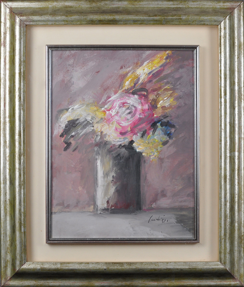 SERGIO SCATIZZI Rosa Tempera su cartoncino Dim. 42x32 Autentica su foto dell' artista Opera archiviata in data 30 novembre 2004 Firmato in basso a dx