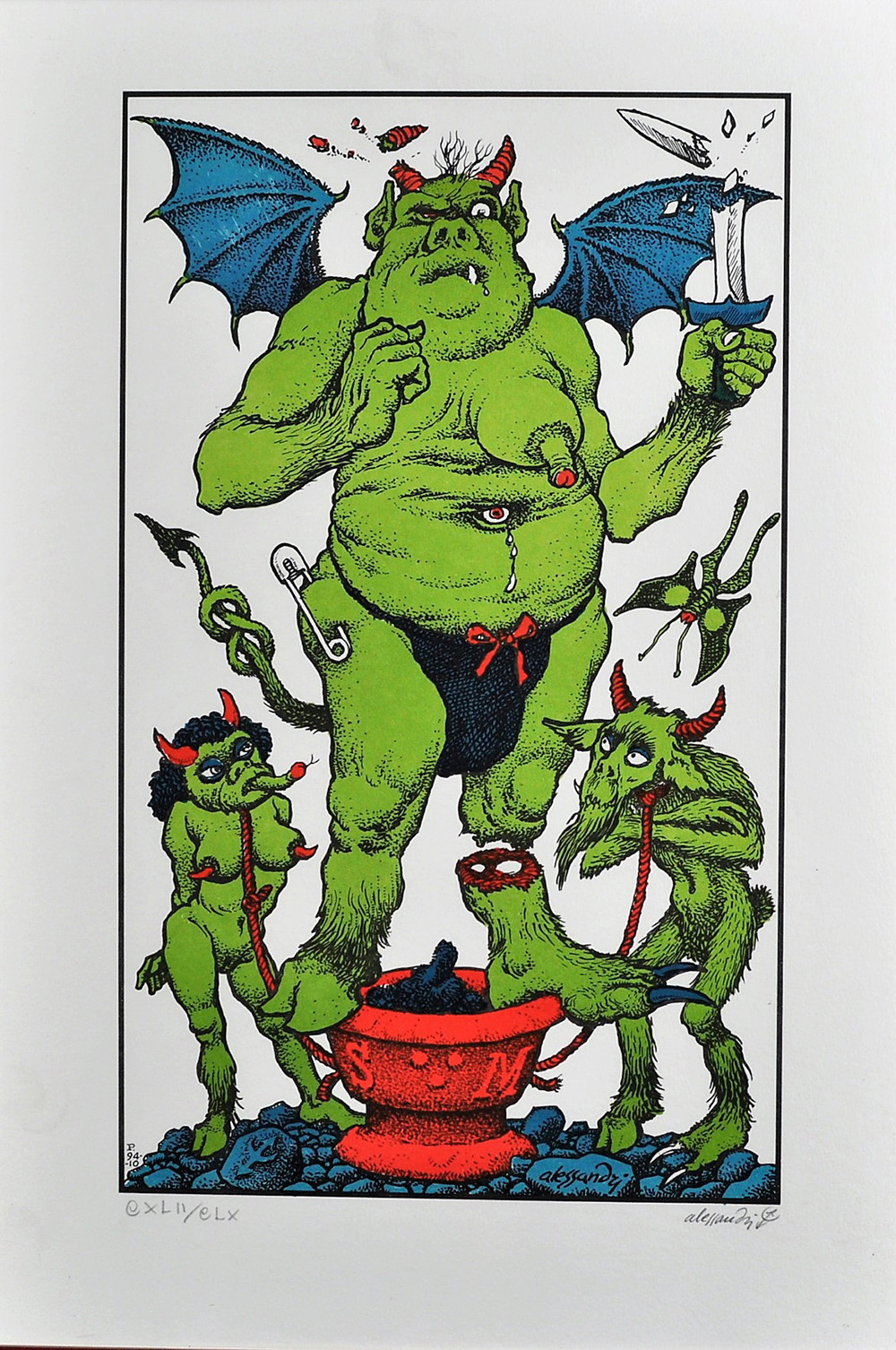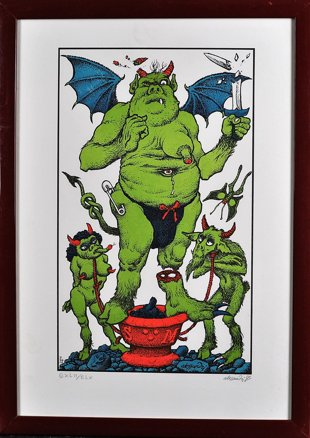 Lot 367 | ALESSANDRO LORENZI Il diavolo Incisione Dim. 50x35 Esemplare CXLII/CLX...
