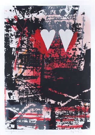 GIORGIO CELIBERTI Udine 19/11/1929 Senza titolo tecnica mista su base serigrafica su carta cm. 100x70, esemplare unico, firma in basso a destra, dichiarazione d'autenticità dell'artista su foto.