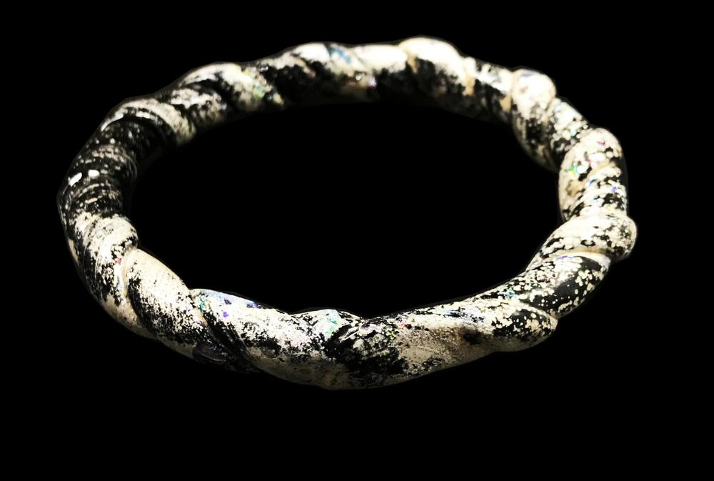ARMILLA IN VETRO DATAZIONE: I-II sec. d. C. MATERIA E TECNICA: vetro blu Elegante armilla realizzata in vetro blu a tortiglione, con begli effetti di iridescenza PRODUZIONE: cultura romana orientale STATO DI CONSERVAZIONE: integra DIMENSIONI: diam. cm 9,5 PROVENIENZA: General Trade, 1992