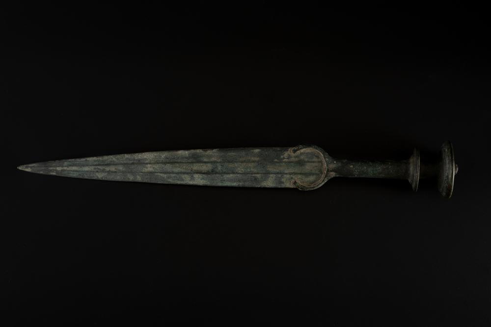 SPADA LURISTAN DATAZIONE: VIII-VII sec. a. C. MATERIA E TECNICA: bronzo fuso e cesellato Grande spada con lama foliata e costolata a margini assottigliati ed impugnatura a sezione cilindrica desinente in un pomello circolare preceduto da un disco PRODUZIONE: cultura del Luristan STATO DI CONSERVAZIONE: integra, ossidata DIMENSIONI: lungh. cm 47,7 PROVENIENZA: Artemission Ancient Art, London, 2006 Il lotto, in base alla legge italiana, non è esportabile / This lot, according to Italian law, can not be exported