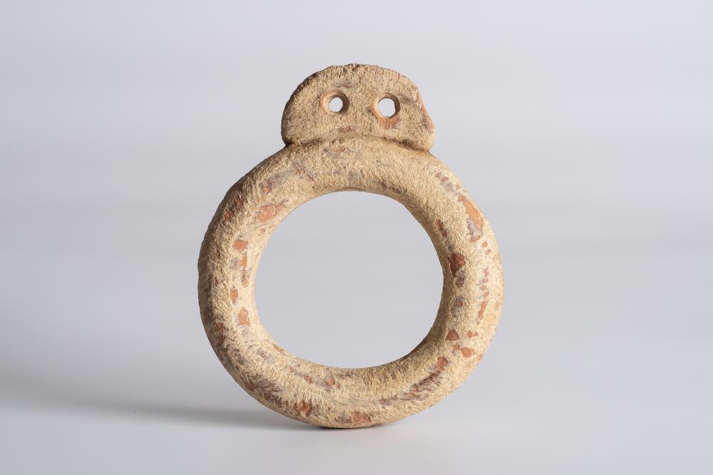 RARO IDOLO CIRCOLARE ANATOLICO DATAZIONE: IV-III millennio a. C. MATERIA E TECNICA: argilla depurata rossiccia, modellata a mano Idolo di forma circolare sormontato da un semicerchio con due fori che rappresentano gli occhi PRODUZIONE: cultura neolitica anatolica STATO DI CONSERVAZIONE: integro, lievi scheggiature DIMENSIONI: diam. cm 10,5