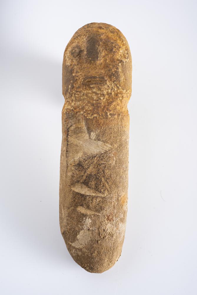 IDOLO YEMENITA DATAZIONE: IV-III millennio a.C. MATERIA E TECNICA: granito scolpito e levigato Figura umana fortemente stilizzata di forma vagamente cilindrica con indicazione di occhi, naso, bocca e barba, destinata probabilmente ad essere infissa direttamente nel terreno. PRODUZIONE: cultura neolitica dello Yemen STATO DI CONSERVAZIONE: integra DIMENSIONI: alt. cm 30