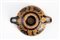 KYLIX ATTICA A OCCHIONI DATAZIONE: fine VI sec. a. C. MATERIA E TECNICA: argilla figulina arancio; vernice nera lucente, suddipinture in bianco e paonazzo; dettagli resi a graffito; modellata a tornio veloce Kylix di tipo A con orlo indistinto dalla vasca emisferica non molto profonda; anse a bastoncello impostate obliquamente sulla massima espansione; piede a tromba modanato su stelo cilindrico, con collarino di raccordo alla vasca DECORAZIONE ACCESSORIA: interamente verniciata eccetto un filetto dalla parte interna del labbro, il tondo al centro della vasca, la parte interna delle anse, la fascia fra le anse, una linea nella parte inferiore della vasca, il bordo esterno e la parte inferiore del piede, fascia verniciata all’interno dello stelo e cerchio con puntino Decorazione: interno verniciato di nero, eccetto un filetto sul labbro ed il tondo al centro della vasca con con gorgoneion; esterno con decorazione identica sul lato A e B: al centro della composizione, fra i grandi occhioni, Dioniso stante a sinistra, completamente avvolto nel mantello, in atto di sollevare una coppa con la mano sinistra; nel campo pampini stilizzati ricurvi con foglie ridotte a puntini da cui pendono grappoli d’uva sotto alle anse PRODUZIONE: ceramica attica a figure nere, Leafless Group STATO DI CONSERVAZIONE: ricomposta da frammenti con piccole integrazioni DIMENSIONI: alt. cm 6,8; diam. cm 18 CFR.: G. Boardman Vasi ateniesi a figure nere, Milano 1990, tav. 290,1-2, p.158 Il lotto, in base alla legge italiana, non è esportabile / This lot, according to Italian law, can not be exported