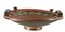 GRANDE PHIALE APULA A FIGURE ROSSE DATAZIONE: IV sec. a.C. MATERIA E TECNICA: argilla figulina camoscio, vernice nera, suddipinture in bianco e giallo, coloritura arancio; modellata a tornio veloce Labbro orizzontale con orlo rilevato, vasca troncoconica, piede ad echino modanato, anse a nastro costolate impostate orizzontalmente sul labbro fra due protomi a bottone DECORAZIONE: al centro, delimitato da un grande ramo di olivo in bianco e da un meandro ad onda destrorso si trova un grande profilo femminile volto a destra con sakkos ricamato e fermato da una tenia svolazzante; la donna porta una stephane radiata, lunghi orecchini pendenti e filo di perle; nel campo di fronte a lei uno specchio e dietro una pezza di stoffa, in basso volute vegetali ed infiorescenze PRODUZIONE: ceramica apula a figure rosse STATO DI CONSERVAZIONE: integra DIMENSIONI: alt. cm 14; diam. cm 45 CFR: A. D.Trendall, A. Cambitoglou, The Red-figured Vases of Apulia II, Oxford 1982 Il lotto, in base alla legge italiana, non è esportabile / This lot, according to Italian law, can not be exported