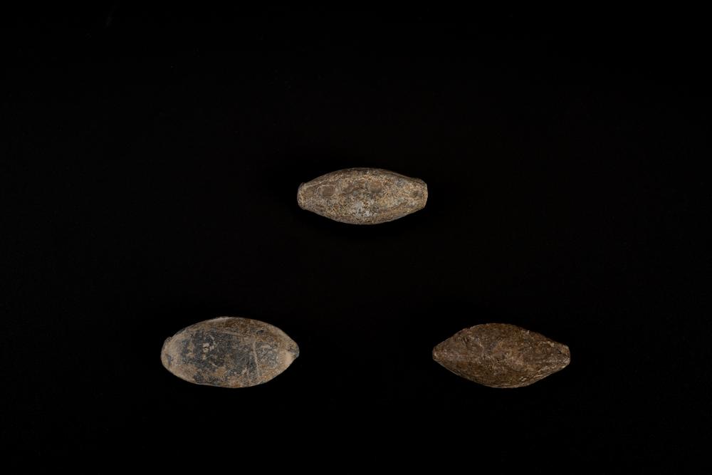 TRE GHIANDE MISSILI DATAZIONE: I-II sec. d. C. MATERIA E TECNICA: piombo fuso e stampato Tre proiettili da fionda di forma ovale, decorati con segni incisi PRODUZIONE: cultura romana STATO DI CONSERVAZIONE: integri DIMENSIONI: lungh. cm 3,8 PROVENIENZA: Antique Shopping, Catawiki Il lotto, in base alla legge italiana, non è esportabile / This lot, according to Italian law, can not be exported
