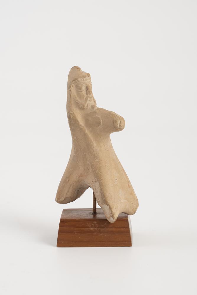 CAVALIERE DATAZIONE: II-III sec. d. C. MATERIA E TECNICA: argilla depurata rossiccia, ingubbiatura bruna, modellato a mano Figura di cavaliere fortemente stilizzata e fusa col cavallo stesso; l’uomo è caratterizzato dal mantello riportato sopra la testa e da una folta barba ricciuta; il cavallo ha muso cilindrico allungato, arti e coda stilizzati PRODUZIONE: cultura partica STATO DI CONSERVAZIONE: integro DIMENSIONI: alt. cm 11 PROVENIENZA: Culturart, Catawiki