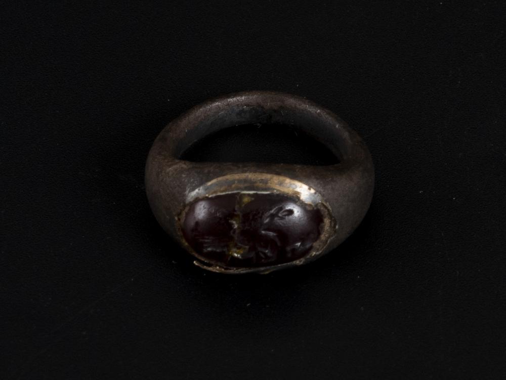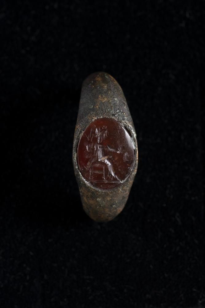 ANELLO IN BRONZO DATAZIONE: I-II sec. d. C. MATERIA E TECNICA: bronzo fuso e cesellato, corniola incisa Anello in verga di bronzo a sezione cilindrica con castone ellittico in corniola decorato con una figura femminile seduta a sinistra PRODUZIONE: cultura romana STATO DI CONSERVAZIONE: integro, ossidato DIMENSIONI: diam. cm 2,2 PROVENIENZA: Marino Taini, Arte Primitivo, New York 2006 Il lotto, in base alla legge italiana, non è esportabile / This lot, according to Italian law, can not be exported