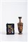 LEKYTHOS ATTICA A FIGURE ROSSE DATAZIONE: metà VI sec. a. C. MATERIA E TECNICA: argilla figulina arancio, vernice nera lucente, modellata a tornio veloce Alto bocchello di forma troncoconica rovescia, collo sottile cilindrico a profilo concavo, a raccordo fluido con la spalla appiattita, corpo ovoide allungato e rastremato verso il basso; ansa a nastro impostata verticalmente dal collo alla spalla, piede a disco modanato DECORAZIONE ACCESSORIA: bocchello e ansa verniciati, spalla con falsa baccellatura; parte inferiore del corpo e superiore del piede verniciati; sopra e sotto la scena figurata meandro continuo destrorso; bordo e sotto del piede risparmiati DECORAZIONE: sul ventre grande figura di giovane erote nudo accovacciato e di profilo verso sinistra con le ali semiaperte sulla schiena ed il braccio destro proteso verso un’infiorescenza STATO DI CONSERVAZIONE: integra ad eccezione del collo ricomposto PRODUZIONE: ceramica attica a figure rosse DIMENSIONI: alt. cm 20 Il lotto, in base alla legge italiana, non è esportabile / This lot, according to Italian law, can not be exported