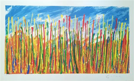Mario Schifano Homs 1934 Roma 1998 “Campo di grano” Serigrafia su carta cm 60x100 Esemplare n. LII/LIIX Firma a matita in basso a destra Esemplare in basso a sinistra