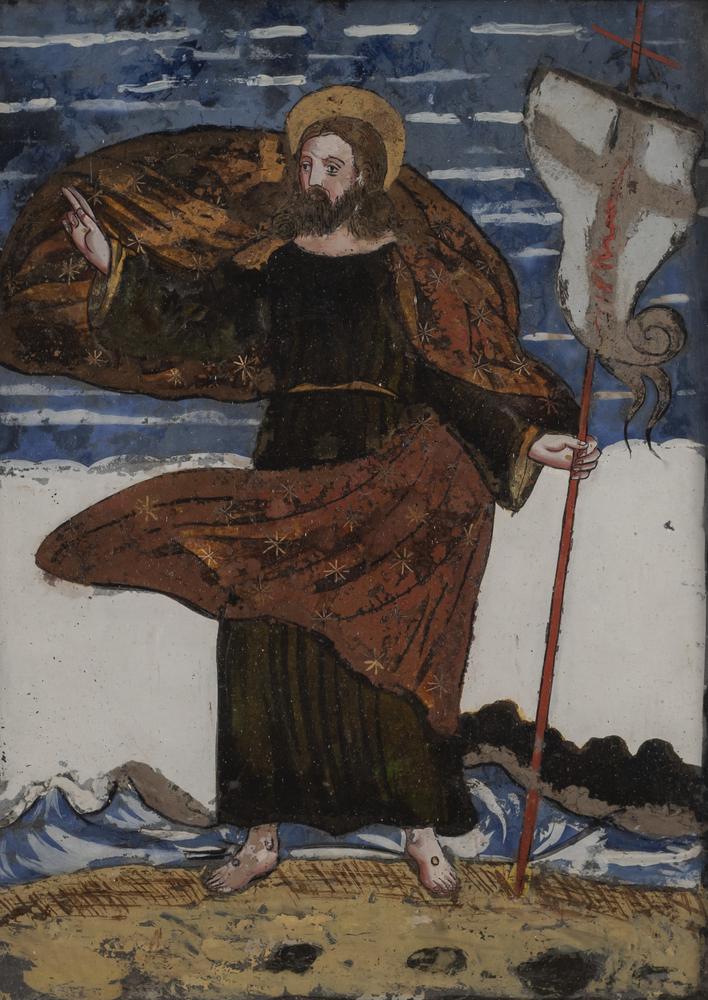 Artista italiano del XVIII secolo CRISTO REDENTORE olio su vetro, cm 28x20,5