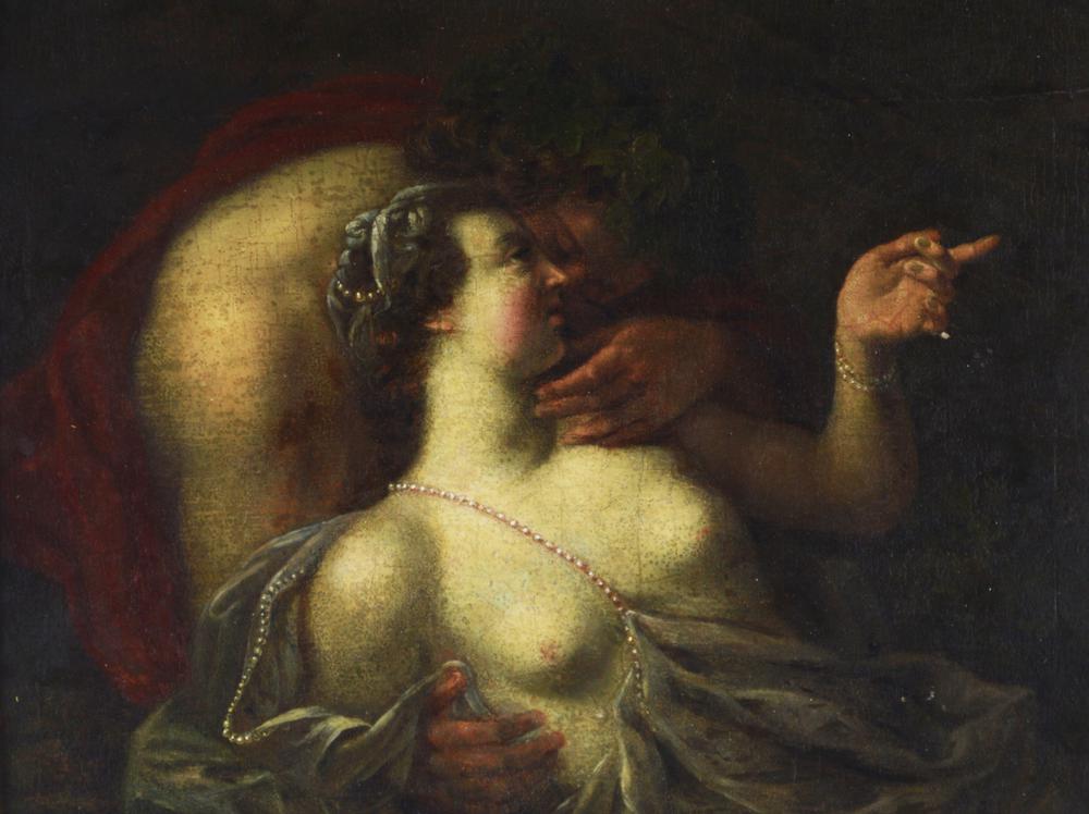 Luca Giordano (Scuola di) BACCO E ARIANNA olio su tavola, cm 17x22