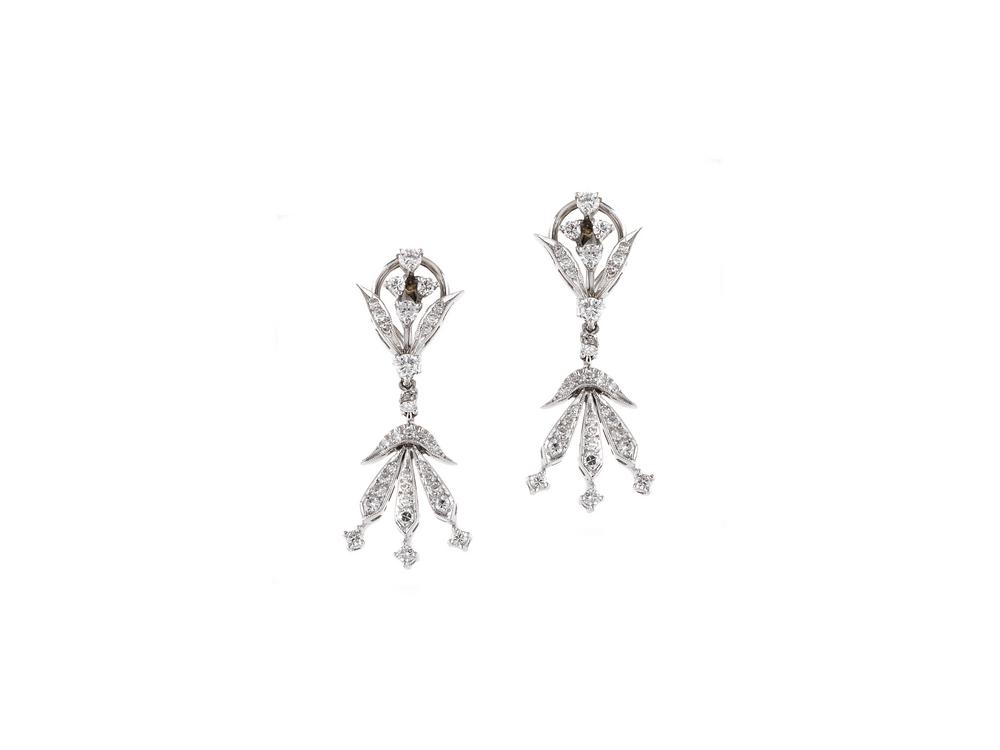 PAIO DI ORECCHINI PENDENTI IN ORO BIANCO E DIAMANTI ciascuno disegnato come...