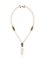 COLLANA SAUTOIR IN ORO GIALLO, SMALTO, PERLE COLTIVATE E DIAMANTI realizzata come un nastro in piccole perle intercalato da tre elementi in oro decorati in smalto nero e diamanti per ct 0.50 circa, punzone 750, lunghezza cm 62, g 45 YELLOW GOLD, ENAMEL, PEARLS AND DIAMONDS SAUTOIR NECKLACE