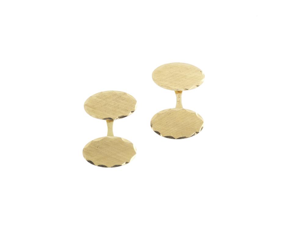 PAIO DI GEMELLI IN ORO GIALLO ciascuno realizzato a doppio bottone ovale in...