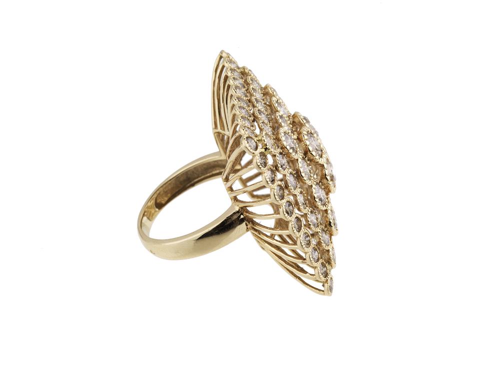 ANELLO IN ORO ROSA E DIAMANTI di forma quadrata, decorato da diamanti brown montati in gradazione entro castoni milligranati per complessivi ct 7.60 circa, misura 15, cm 3x3, g 12 DIAMOND AND PINK GOLD RING