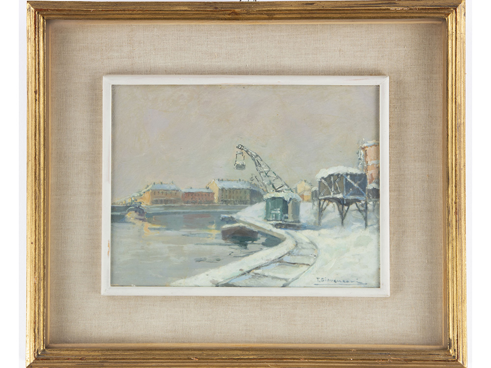 Tullio Giovenzani (1907-1975) Nevicata 18x23,5 cm Olio su compensato
