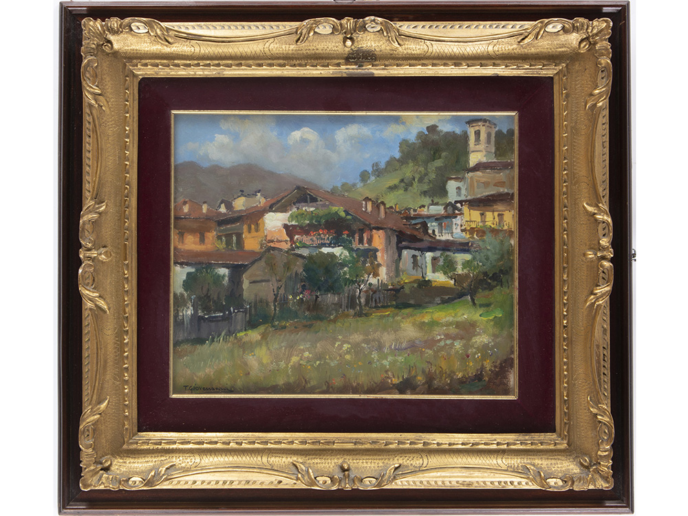 Tullio Giovenzani (1907-1975) Scorcio di paese montano 24x29 cm Olio su...