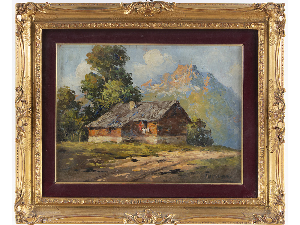 Fornari (XX secolo) Casolare 30x40 cm Olio su compensato