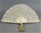 Simone Carrara Spalato 1864-933 Ventaglio in merletto di Burano decorato a motivi vegetali con stecche esterne in avorio finemente scolpite e incise a motivi di fiori e uccelli, stecche interne in osso