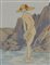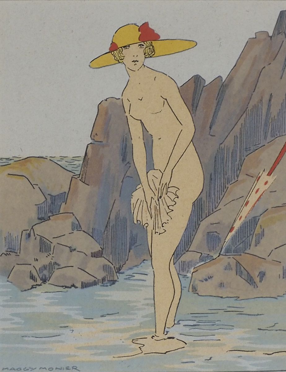 Maggy Monier 1887-1965 "Bagnante" cm. 16x13 - acquerello su base litografica Firmato b. a s.