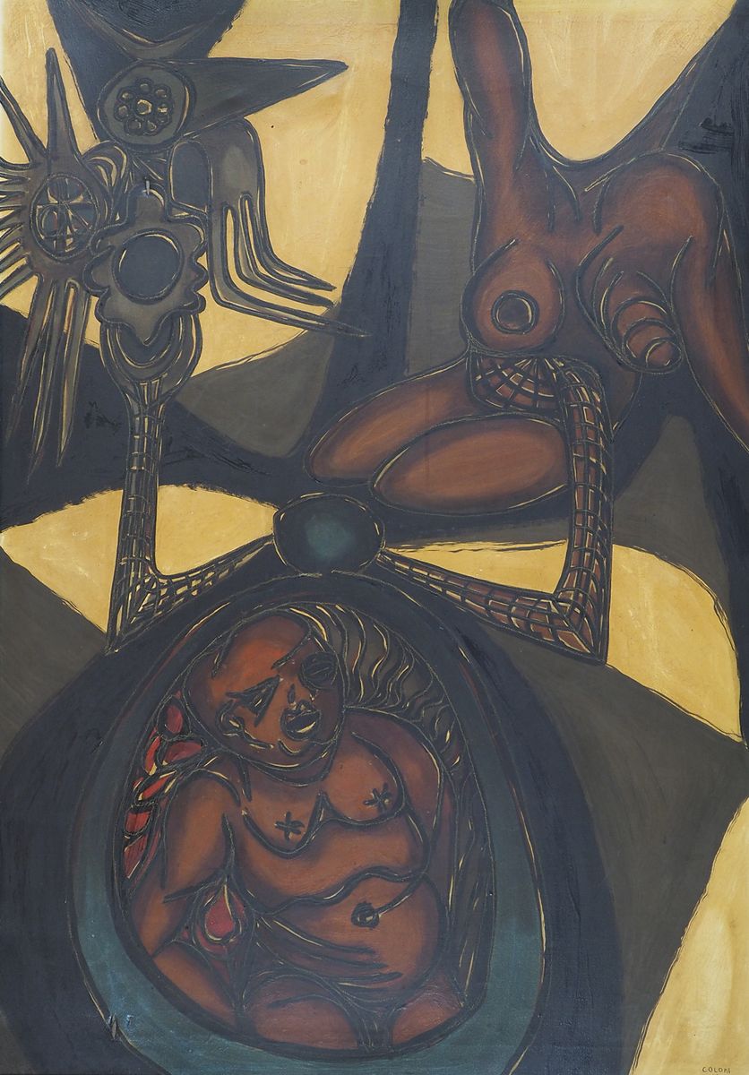 Sabino Coloni Trieste 1931-1975 "Ovulazione" cm. 100x70 - olio su tela (rottura) Firmato b. a d. e datato '69.