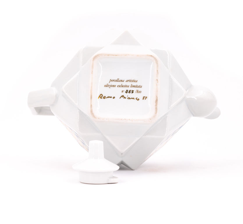 Firma, datazione, numerazione (Esemplare 287/800) e iscrizione 'Porcellana artistica edizione esclusiva limitata' serigrafate sotto la base