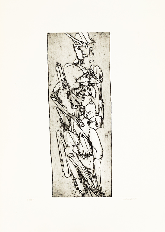 Cartella contenente una prefazione di Sandra Orienti, presentazione di Gaetano Panazza, un racconto inedito di Guglielmo Poloni e 5 acqueforti originali di Remo Brindisi, ciascuna recante firma e numerazione (Esemplari 20/45) a matita al fronte