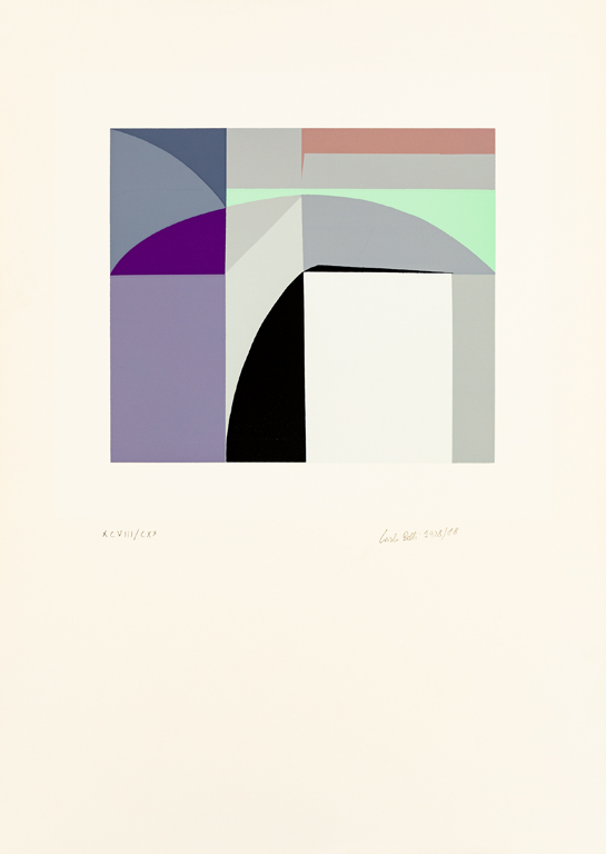 Cartella contenente testo di Vanni Scheiwiller, colophon di presentazione con numerazione (Esemplare XCVIII/CXX) e una serigrafia a 11 colori di Carlo Belli, recante firma, datazione (1928/1988) e numerazione (Esemplare XCVIII/CXX) a matita al fronte